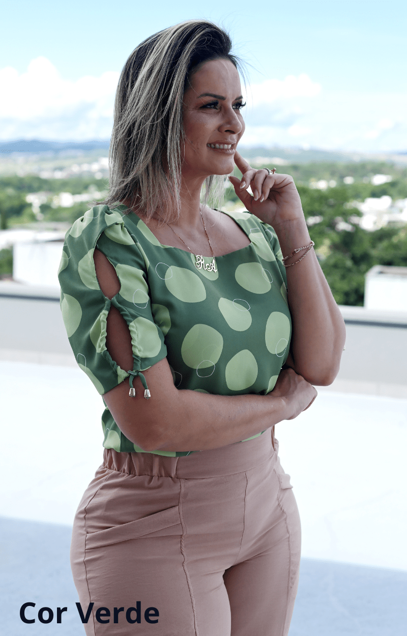 Blusa manga curta Leila, confeccionada no tecido crepe ggt, ele extremamente confortável e leve. É uma peça prática por possuir secagem rápida, possui detalhes na manga, trazendo elegância e delicadeza a peça e ombreiras do próprio tecido. Sua forma é ideal para mulheres que buscam peças clássicas e leves e ao mesmo tempo um toque romântica. Com tecido e corte selecionado, a peça atende a qualquer biótipo da mulher.