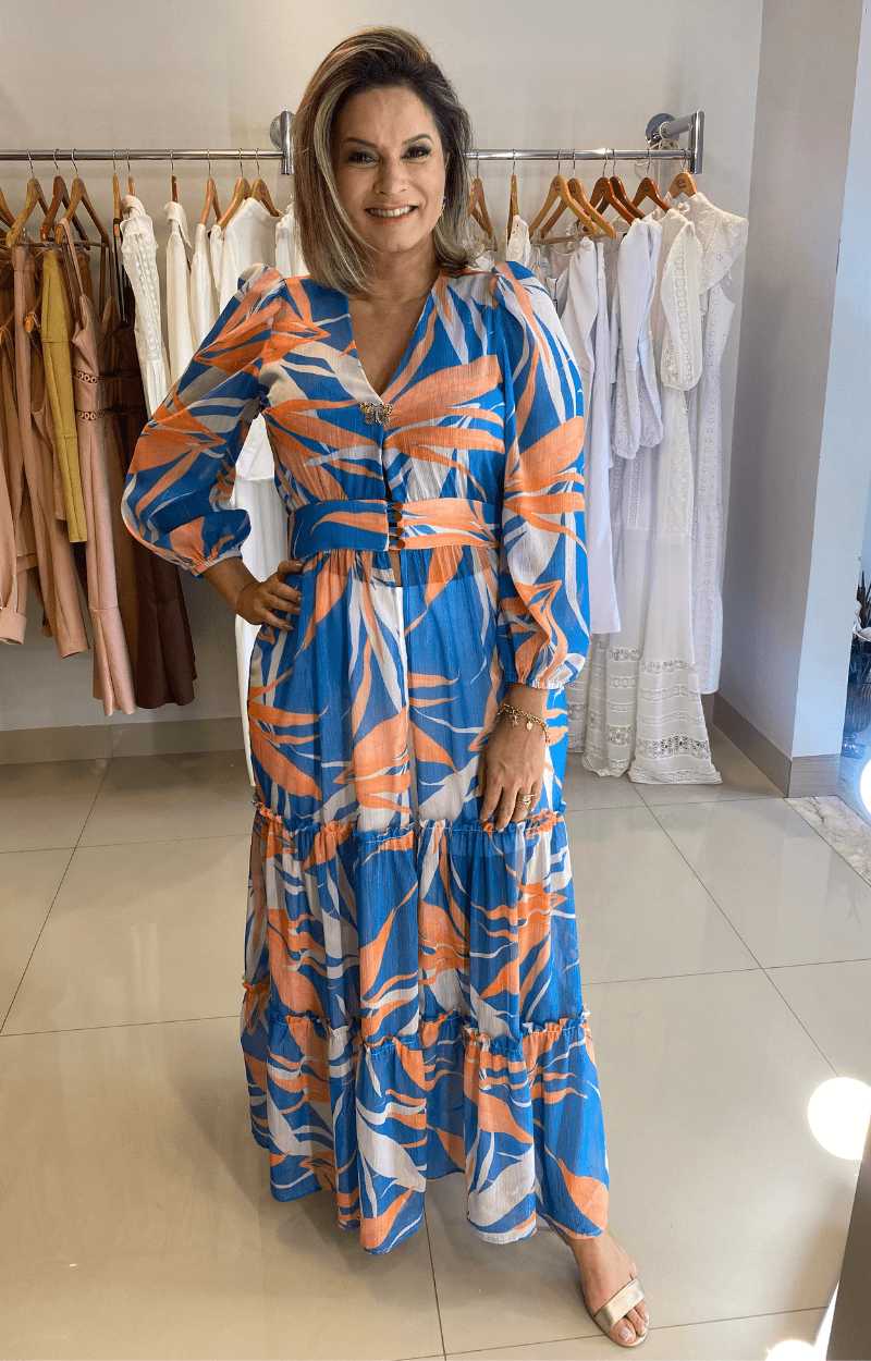 Saída de praia Esmeralda, foi confeccionada no tecido chiffon, possui abotoamento na parte frontal, decote em V e manga longa.